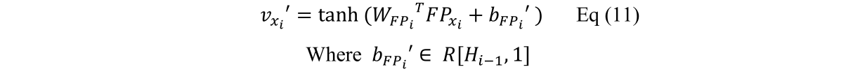v x i ′ ′ = t a n h ( W F P i T F P x i + b F P i ′ ) v_{x_i}'' =tanh(W_{FP_i}^T FP_{x_i}+b_{FP_i}') v x i ′′=tanh ( W FP i T FP x i +b FP i ′)