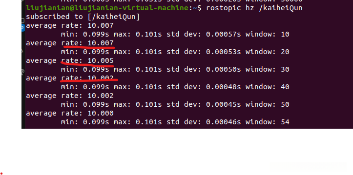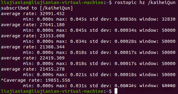 使用 rostopic hz /kaiheiQun, 查看发送massage情况