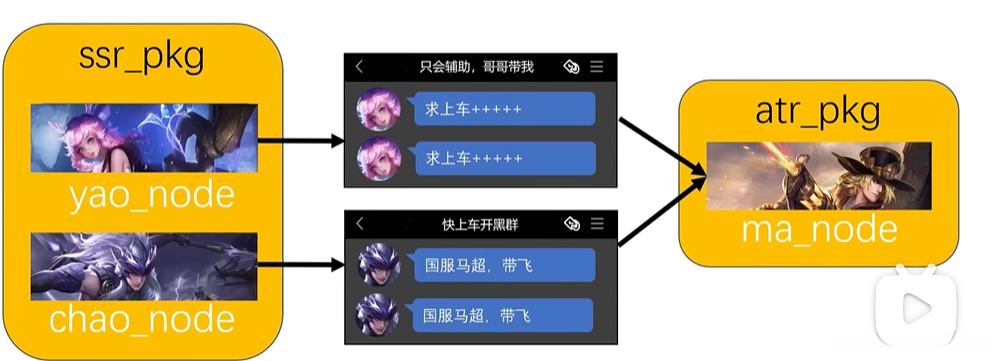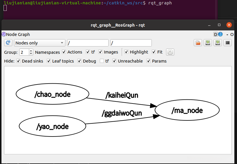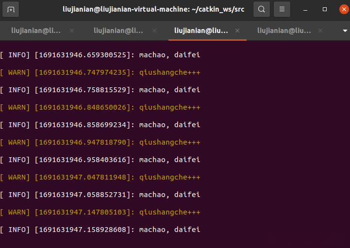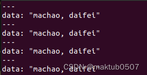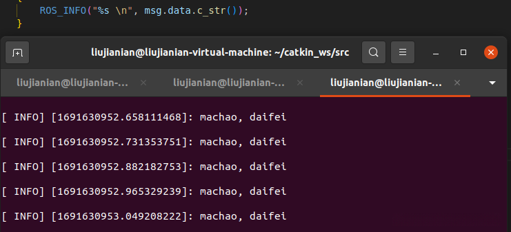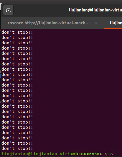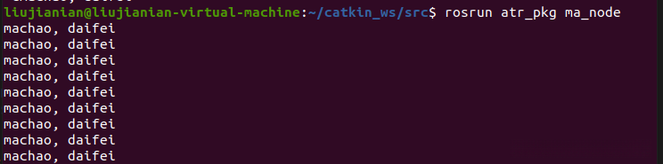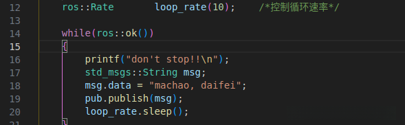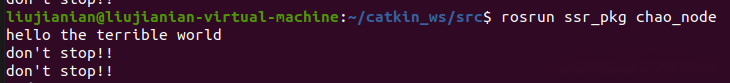 chao_node 节点发送信息 “machao, daifei” ,但不可见,don't stop是节点一个printf