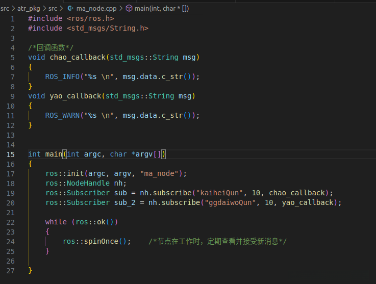 【ROS】四、C++ 编写 Publisher&Subscriber Node