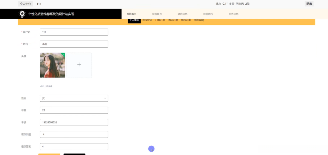 该个性化旅游推荐系统的研发旨在以简便的方法实现个性化旅游推荐。