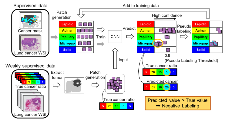 Negative Pseudo Labeling using Class Proportion for Semantic Segmentation in Pathology