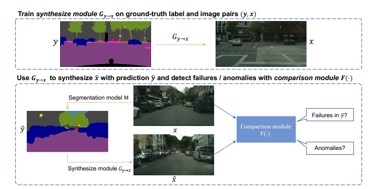 Synthesize then Compare: Detecting Failures and Anomalies for Semantic Segmentation
