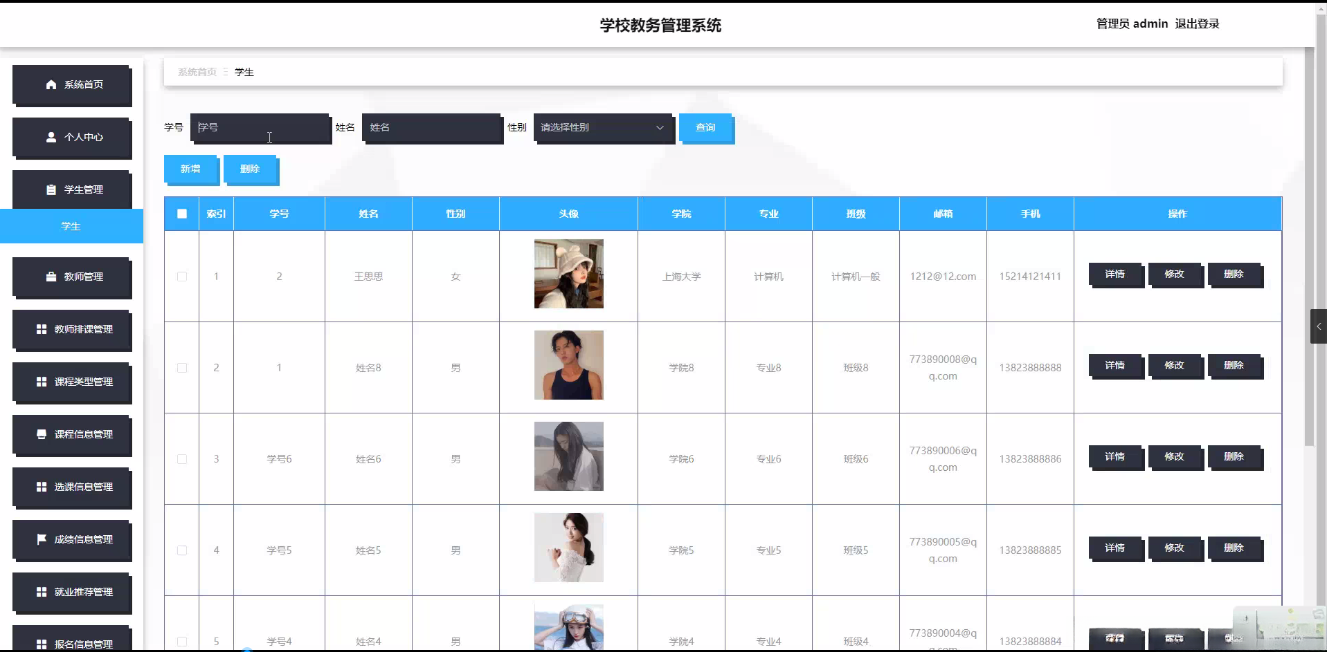 研究意义:学校教务管理系统的研究对于提高学校教务管理效率和教学质量具有重要意义。本系统能够具备教师管理模块、学生信息模块以及课程设置模块等核心功能,并能为学校的信息管理和数据分析提供便利服务。同时支持查询学生成绩记录等数据,并能帮助学生进行职业规划与技能提升等操作