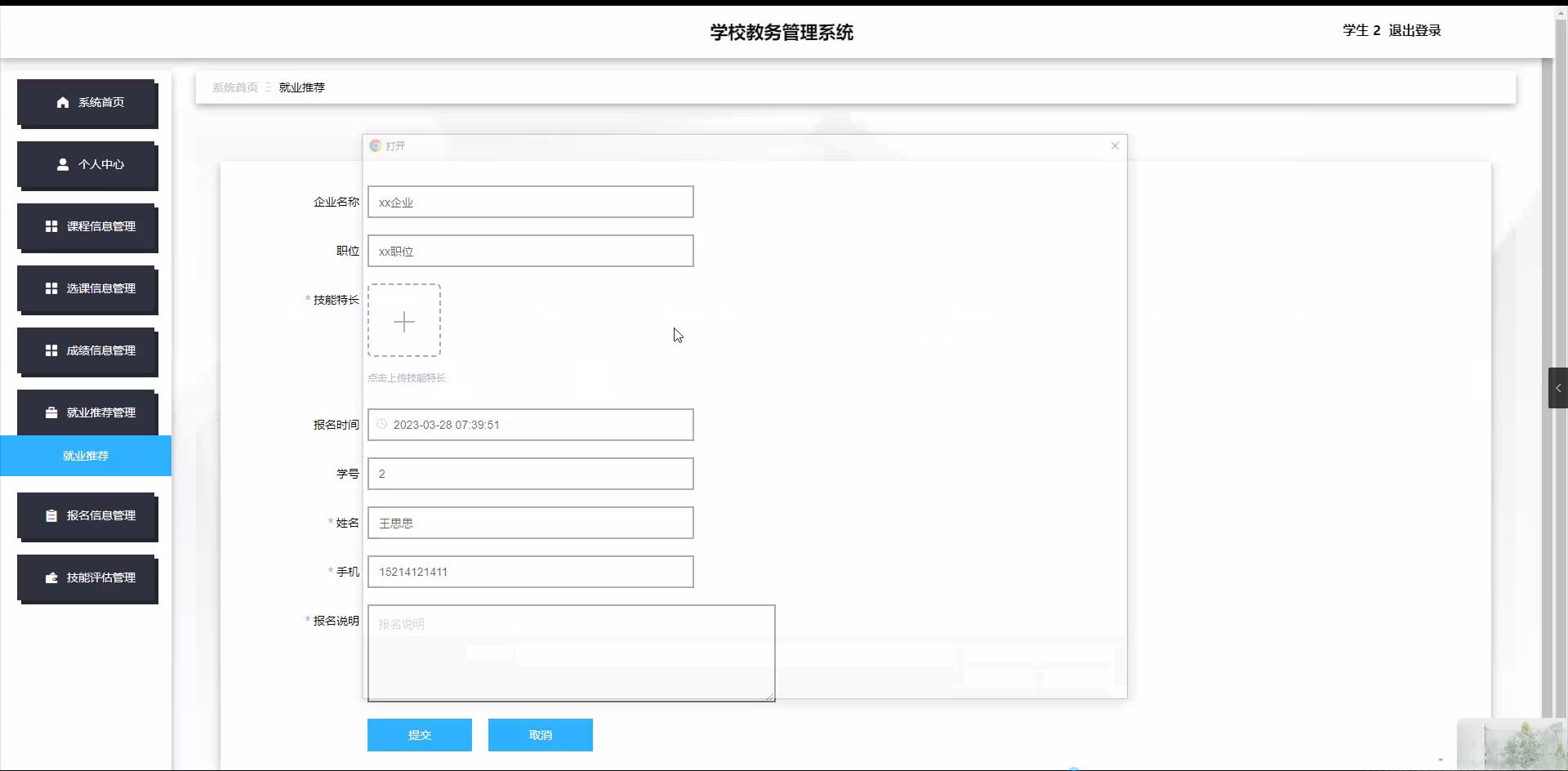 本研究的目标是构建一个全面功能的学校教务管理系统。通过对大量教师、学生及课程类型等数据的搜集与归类处理,在线平台将为用户提供准确且详实的信息查询服务。具体而言,在线平台将具备以下核心功能:第一部分将负责开发完善教师信息数据库以实现注册与登录的需求;第二部分将集中于收集并建立完整的学生及课程相关数据存储系统;第三部分则致力于打造智能化的学生个性化学习路径规划工具;第四部分将整合校内外教育资源配置优化方案; 最后一部分则聚焦于提升学生的就业指导与职业发展支持水平
