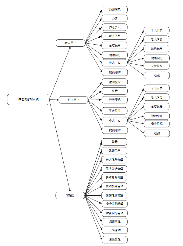 养老院管理系统的设计与实现需要满足的需求有以下几个:
