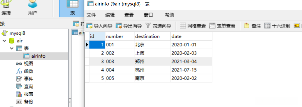 String sql = "select * from airinfo where date=?";