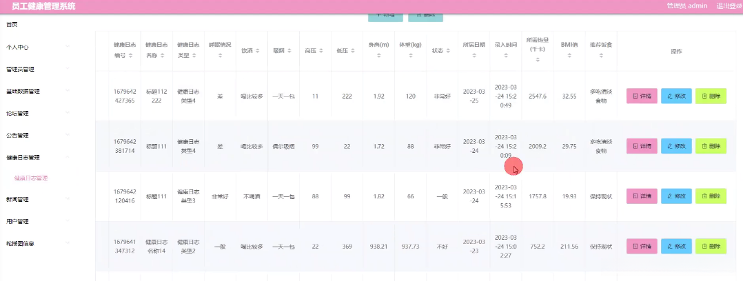 基于SpringBoot+Vue员工健康日志管理系统设计与实现(源码+lw+部署+讲解)