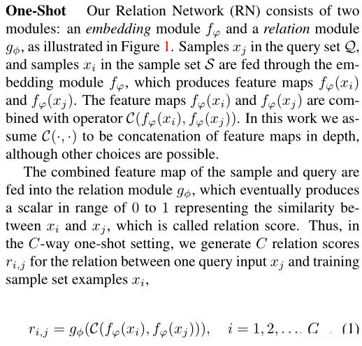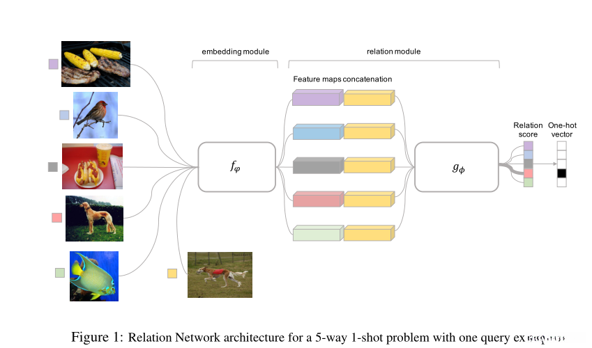 与我们最相关的方法是[36]的原型网络和[20]的孪生网络。这些方法侧重于学习嵌入,转换数据,使其可以用固定的最近邻[36]或线性[20,36]分类器进行识别。相比之下,我们的框架进一步定义了一个关系分类器CNN,风格为33,44,14与[20,36]相比,这可以看作是提供了一个可学习的而不是固定的度量,或者是非线性的而不是线性的分类器。