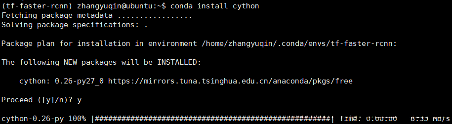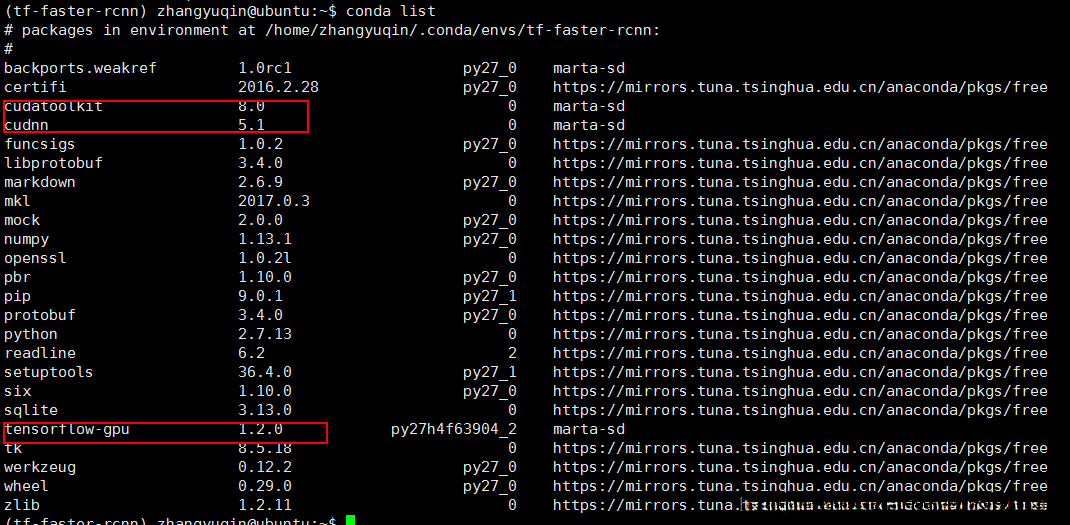 b. 在虚拟环境中安装的东西会放在此根目录下/home/USERNAME/.conda/envs/tf-faster-rcnn(创建的虚拟环境名字)