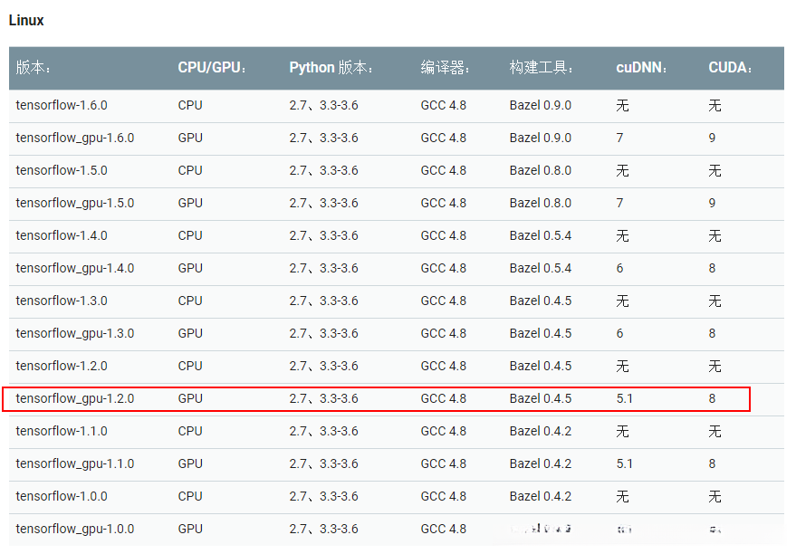 根据cuda 和 cudnn版本,到tensorflow 的官网上查对应的TF版本。我的cuda是8.0,cudnn是5.1的,所以要安装1.2.0