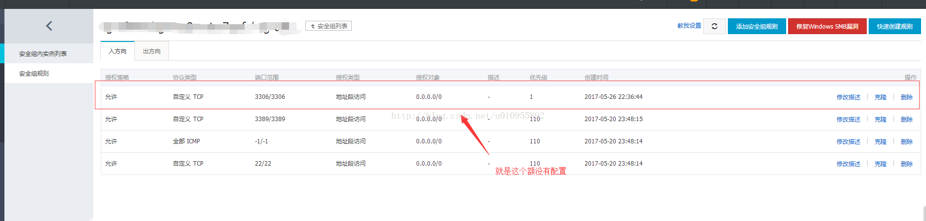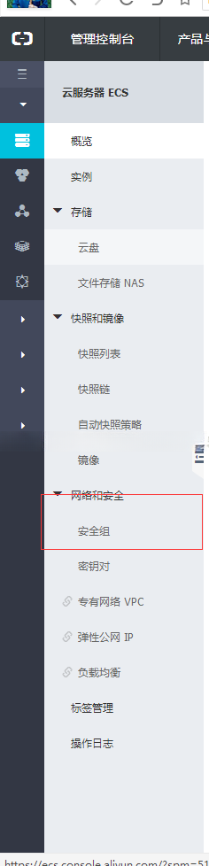 后来我想都无法连接 telnet 都无法连接 ,除了除此之外的问题暂且不提 ,先试着解决这个问题 ,首先是关闭所有防火墙 firewall 和 iptables 。之后重启 发现这样并没有什么实质性的帮助 ,于是接着怀疑是否是阿里云服务器设置了相关限制措施 ,最后尝试了一些其他的方法后 点到了这个位置。