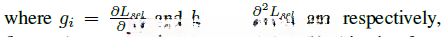 分别是目标函数对于输入特征图谱的一阶偏导与二阶偏导的结果。该特征图谱所包含的元素数量极为庞大(超过27万)。为了计算所有二阶梯度所需的时间复杂度约为O(27, 万 × 27, 万),这是一项耗时的工作。为了简化计算,在公式【5