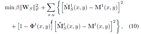 用于表示前景掩码。接着我们基于特征图谱的一部分来重建前景掩码,并通过求解以下方程式: