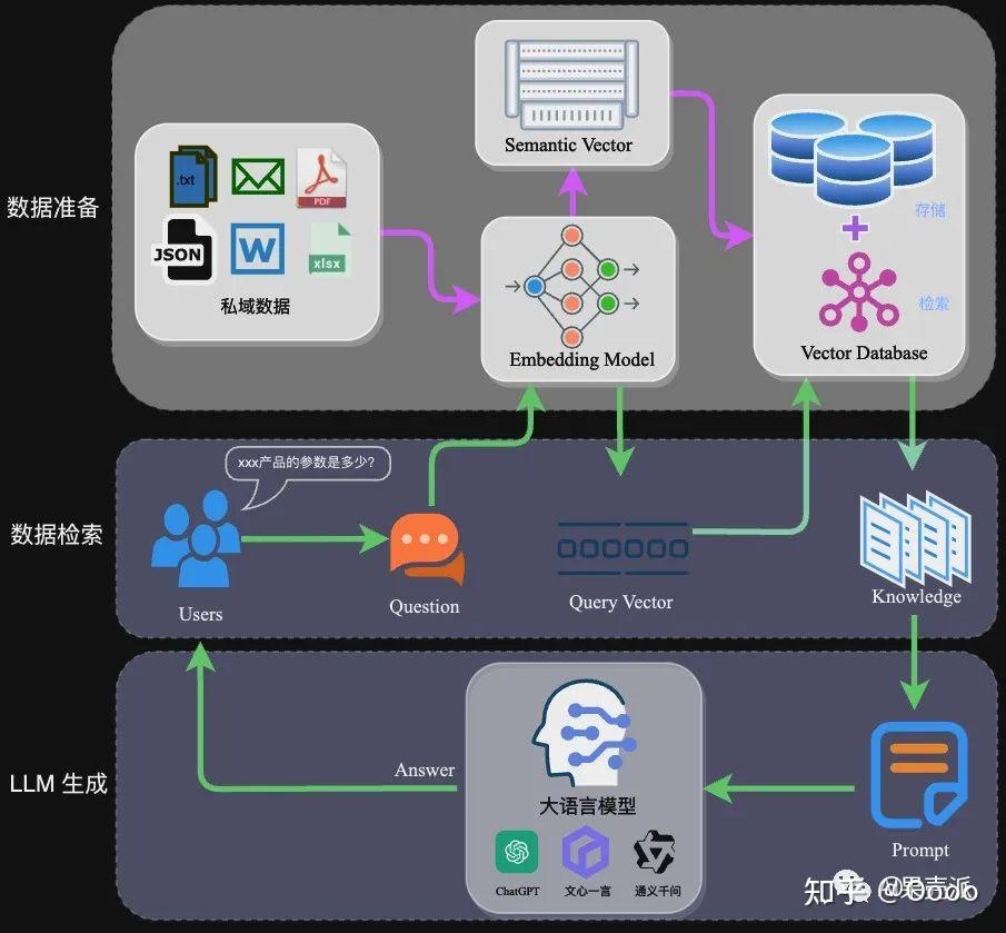 - 数据预处理环节:采用先进的算法进行数据抽取——>对文本实施切分——>运用嵌入模型将文本转换为数值表示——>完成预处理后存入数据库