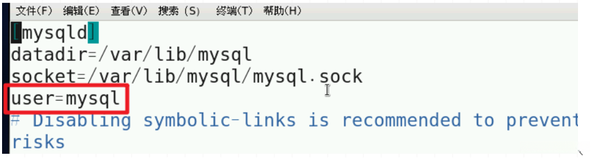 此处并未明确指定 mysql 服务所使用的操作系统;但所有配置参数均与当前配置一致;修改路径的方式是将 user:mysql 添加到 mysqld 下方;但事实上这已经是默认设置。