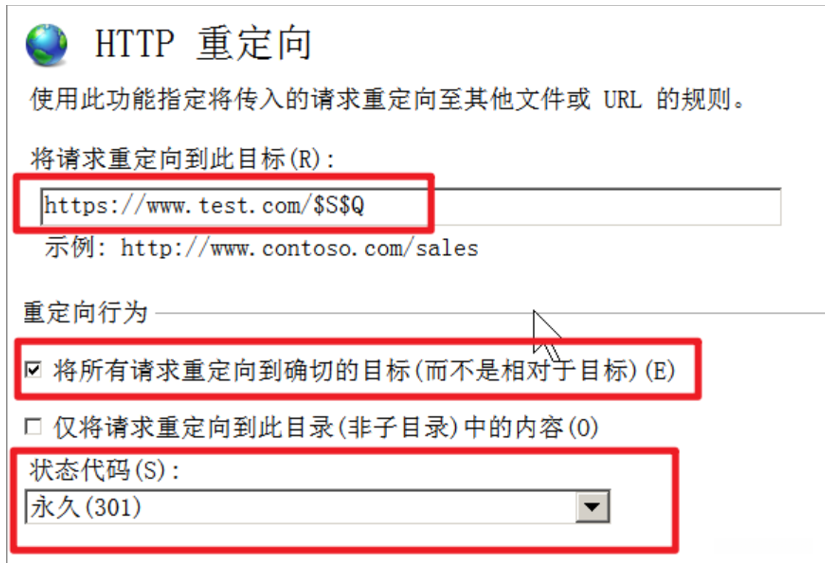 对Web网站实施HTTP至HTTPS redirect配置,在Windows系统上仅允许采用HTTPS协议进行访问(注:该配置中所使用的证书由test.com颁发,并且可通过https://www.test.com这一途径实现对Web网站的访问)。