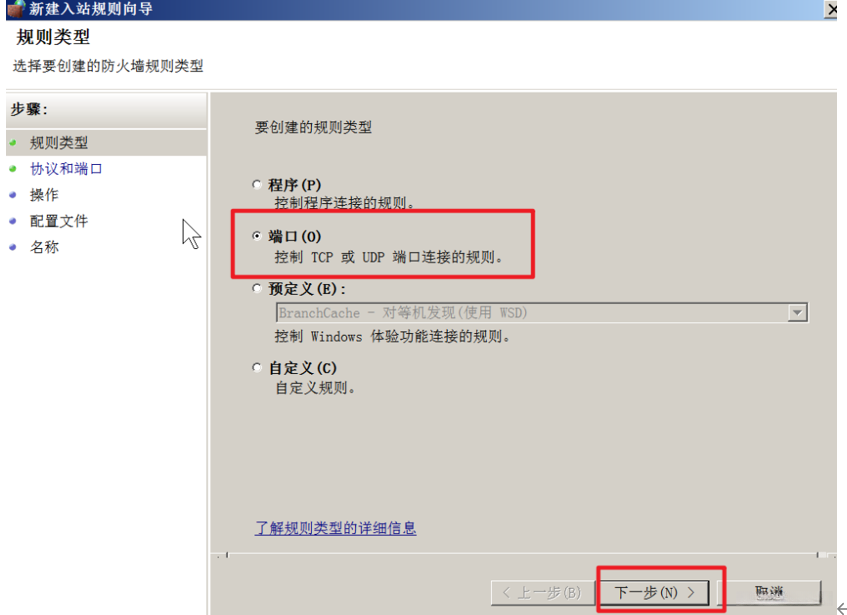 管理工具 -> 高级安全Windows防火墙 -> 右键入站规则 -> 新建规则端口,下一步