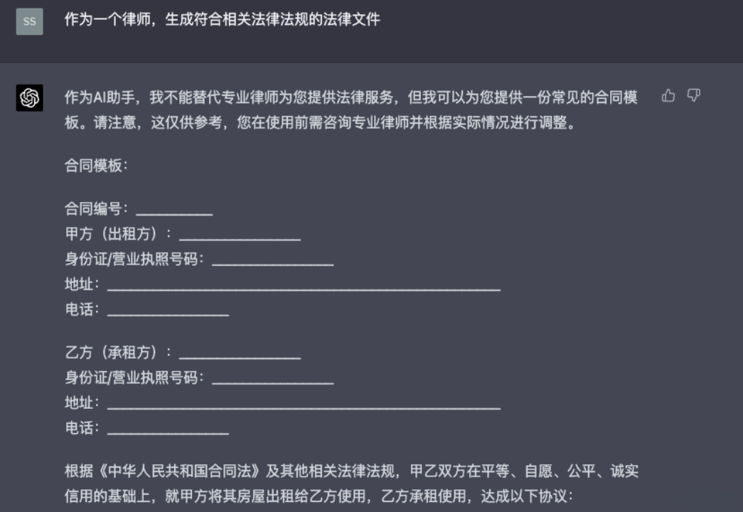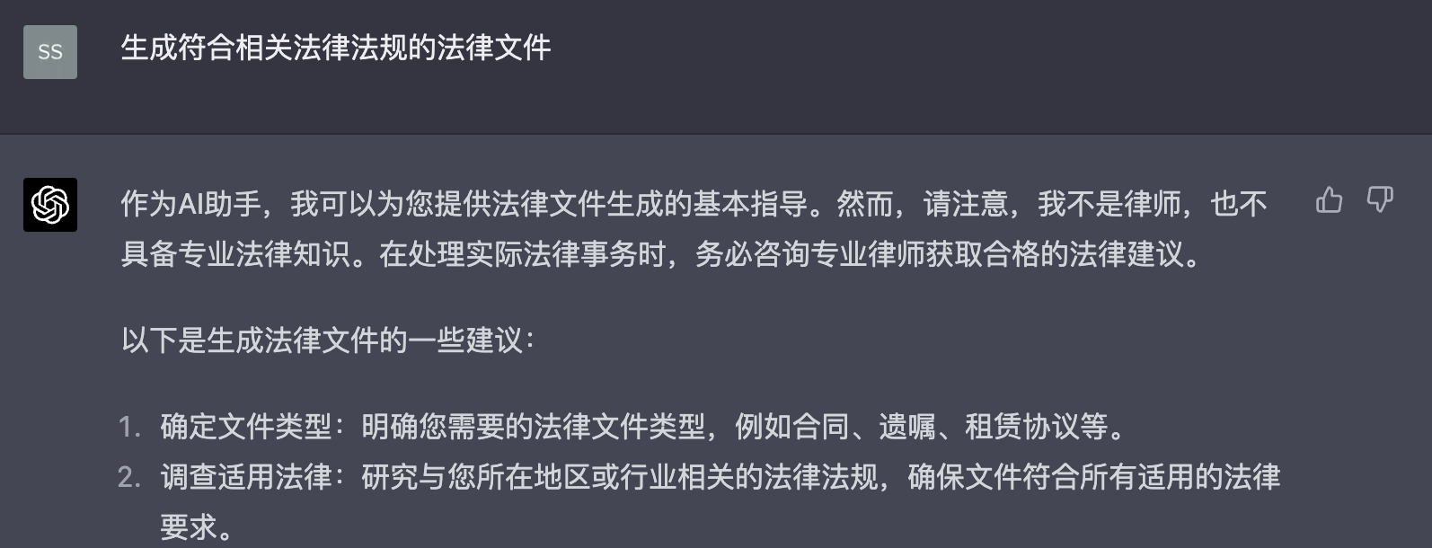 Prompt2:作为一个律师,生成符合相关法律法规的法律文件