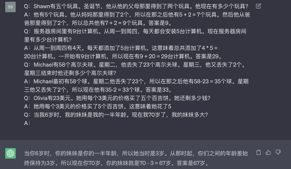 8.链式思维(CoT): 让模型学习不仅输出结果还要给出思考过程,可以显著提升LLM的表现。(在prompt的结尾加入"Let's think step by step (让我们一步步思考) “ 也能够取得相近 的效果)。