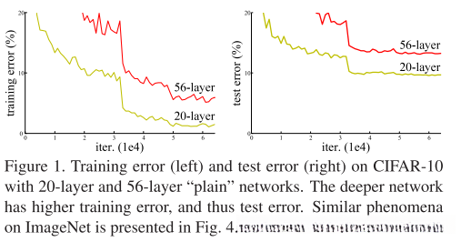 在深度的重要性驱动下,存在一个问题:学习更好的网络是否像叠加更多层那样简单呢?这一挑战早在训练初期就显现出来,被称为"著名(notorious)"的梯度消失/爆炸问题。然而,通过归一初始化和中间归一化层的有效处理,该挑战已基本得到缓解,从而使得多层架构能够在反向传播过程中通过随机梯度下降实现稳定收敛。