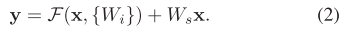公式(1)中指出F和x应具有相同的维度;若其维度不符,则可通过与矩阵Ws相乘的方式实现匹配以保证结果的一致性。
