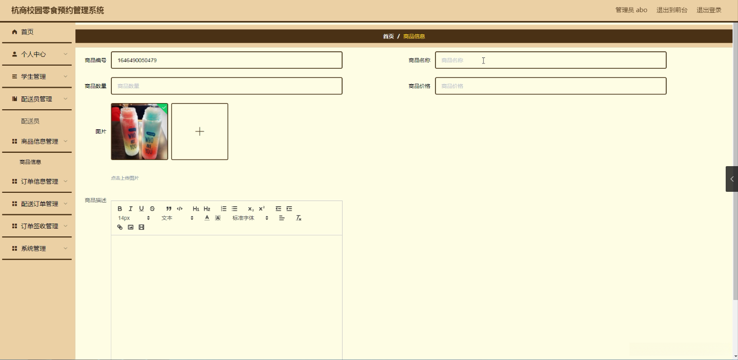 杭商校园零食预约管理系统的出现,不仅为学生们提供了更加便捷的零食购买方式,还为学校管理提供了有效的数据支持。通过该系统,学生可以随时随地查看商品信息、进行预约下单,配送员则可以高效地完成订单配送,而学校则可以通过数据分析更好地了解学生的消费习惯和需求,为校园管理和服务提供依据。此外,该系统的实施还有助于提升校园智能化水平,推动校园信息化建设。