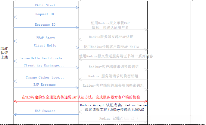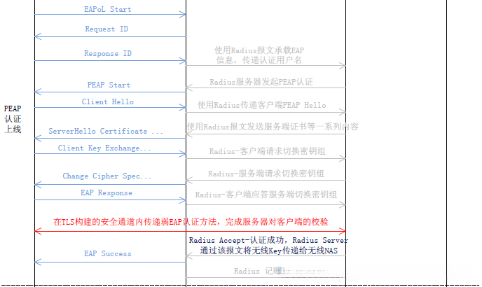 随后的一对交互流程采用开放模式实施认证,严格的实名认证归入PEAP阶段完成。