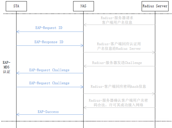 注意:过程1 和2 与普通的EAP-MD5 认证没有任何区别。