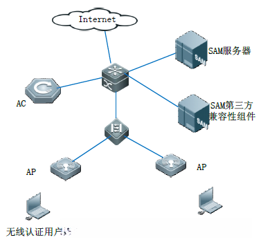 该第三方兼容组件是一台独立运行的服务器,在其运行过程中旨在防止认证客户端与SAM服务器之间的直接通信联系。其主要功能是确保SAM服务器的安全性,并减少潜在的安全威胁风险;该组件通过接收认证客户端发送过来的锐捷专用协议数据,并将其转换为SAM系统能够有效识别和处理的数据格式后传送给其所属的SAM服务单元;随后,在此基础上该组件对数据进行打包并加密处理使其成为具有明确标识性的格式供认证客户端识别;最后通过Unit Datagram Protocol(UDP)的形式将加密后的数据发送至认证客户端设备端口进行处理