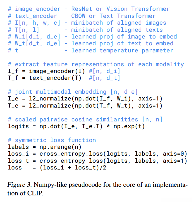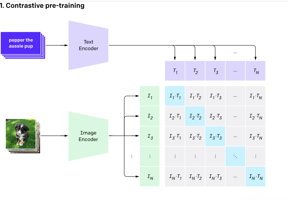给定一批N个(图像,文本)对,CLIP被训练来预测批次中实际发生的N × N个可能的(图像,文本)配对中的哪一个。为此,CLIP通过联合训练图像编码器和文本编码器来学习一个多模态嵌入空间,以最大化批次中N个真实对的图像和文本嵌入的余弦相似度,同时最小化N*N − N个不正确配对的嵌入的余弦相似度。