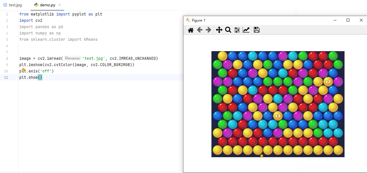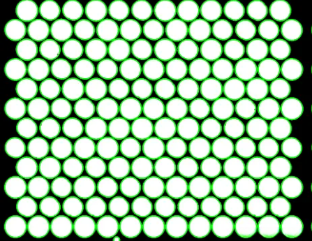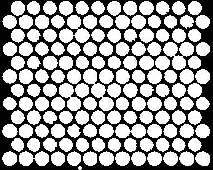 因为一些圆形小球靠得较近,在二进制图像上存在轻微重叠,通过函数cv2.erode()对图像进行处理,从而达到分离目标。