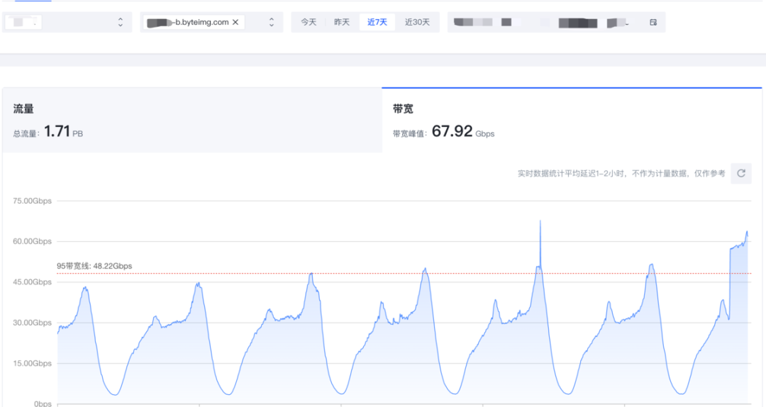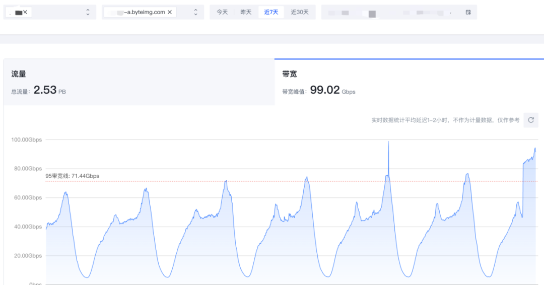 经过线上实验,随机选取了一组流量进入实验过程,经过一段时间运行,我们发现 p-xx-a 的域名带宽和p-xx-b的域名带宽形成显著差异;我们从流量上计算(2.53PB-1.71PB)/2.53PB*100 = 32.4%,因此评判,在严格的和webp对比下,带来至少 30%的带宽节省验证符合预期。