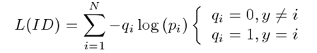 然而,行人重识别可以当做单步学习任务,因为测试集中的ID不会出现在训练集中。所以防止ReID模型过拟合训练数据中的ID就显得十分重要。Label smoothing(LS)广泛应用在防止分类任务过拟合上。将