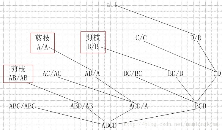 * 先验性质:如果给定的单元不满足最小支持度,则该单元的后代(即更特殊化的单元)也都不满足最小支持度。
