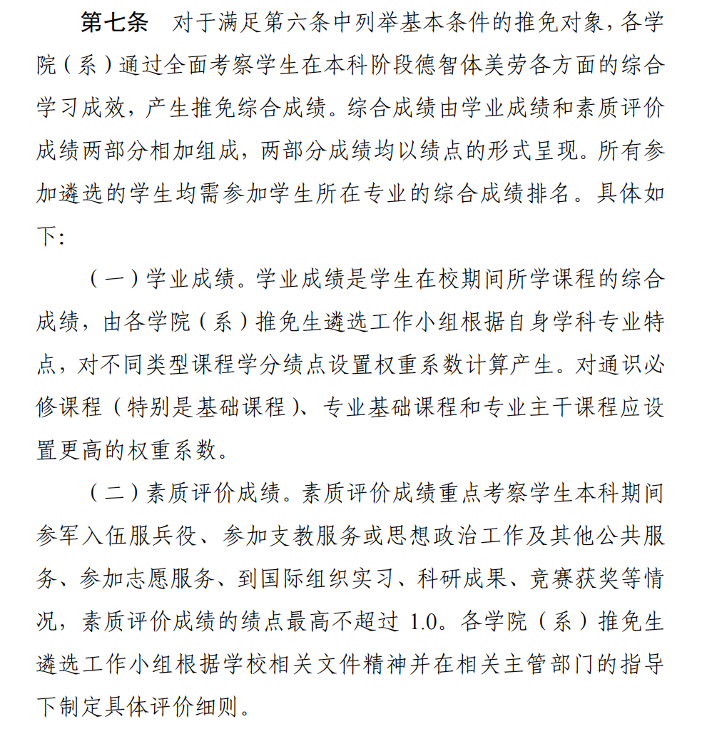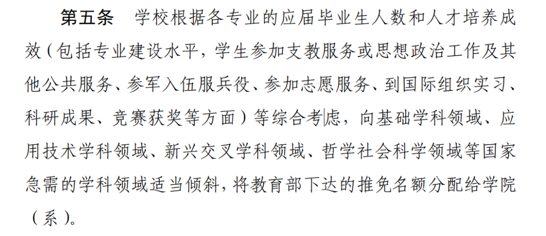 根据通知,学校根据各专业的应届毕业生人数和人才培养成效等综合考虑,向基础学科领域、应用技术学科领域、新兴交叉学科领域 、哲学社会科学领域等国家急需的学科领域适当倾斜,将教育部下达的推免名额分配给学院。