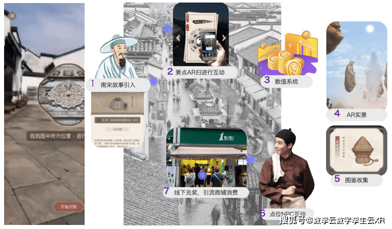 重点景点,部署AR标识,通过扫一扫,将传统的图文介绍转变成数字化介质呈现,提升数字化体验。根据当地的文化内容,设置AR互动游戏,让游客边玩边体验边学习。充分与游客互动。通过游览打卡,获得当地文化小礼品或消费劵,带动当地文化传播和产业增值。