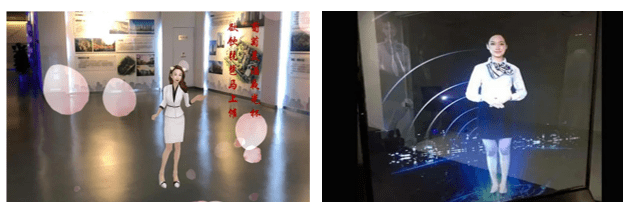 乡村古老建筑在游客参观时,通过扫描实景,显示一个虚拟人,并进行语音讲解;通过大屏,设置几个具备代表性的历史人物,点击屏幕,可进行自我介绍;还可以和虚拟形象拍照进行互动留念;