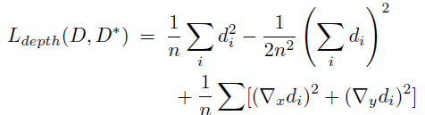 整体上说来涉及的是L2损失以及尺度变化带来的误差项,在此我们不做详细讨论;随后考察水平与垂直两个方向上的梯度差异。这一部分能够与ground truth预测所得图像的梯度进行比较;这种对比使得预测结果不仅局限于邻近区域的数据特征,并且能够在一定程度上反映相似局部结构的存在;这样的输出效果更为理想