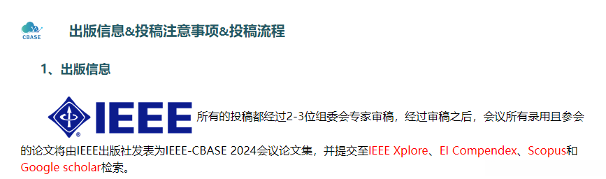 | *CBASE为计算机类相关会议,面向计算机、数学、电子信息等接受稿件;所有稿件请偏重于实证多于综述,在论文表述上务必注意侧重于模型、系统、实验、数据分析等,以更符合会议审稿以及出版社/数据库的审核要求。 |