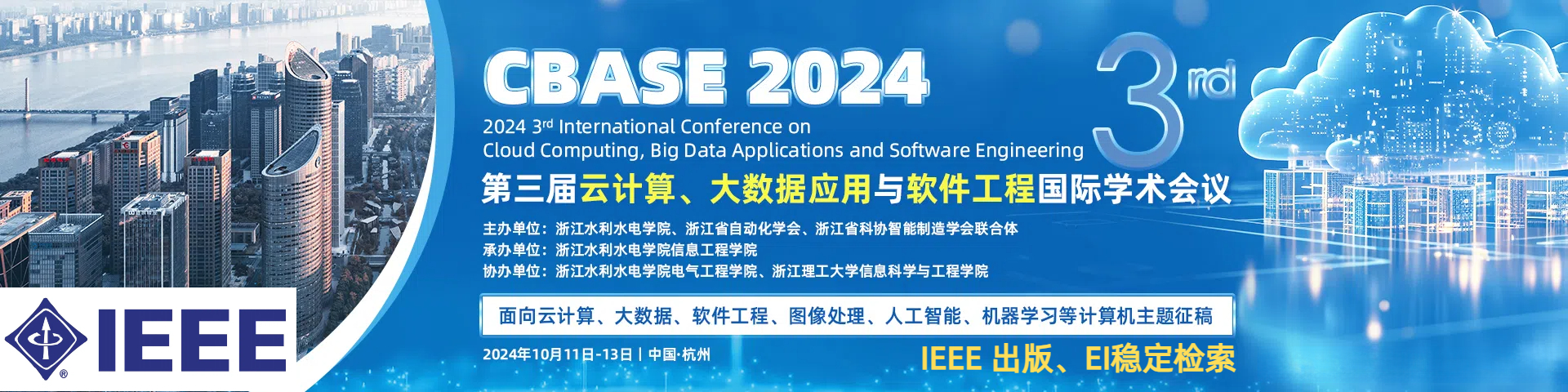【学术会议征稿】第三届IEEE云计算、大数据应用与软件工程国际学术会议 (IEEE-CBASE 2024)