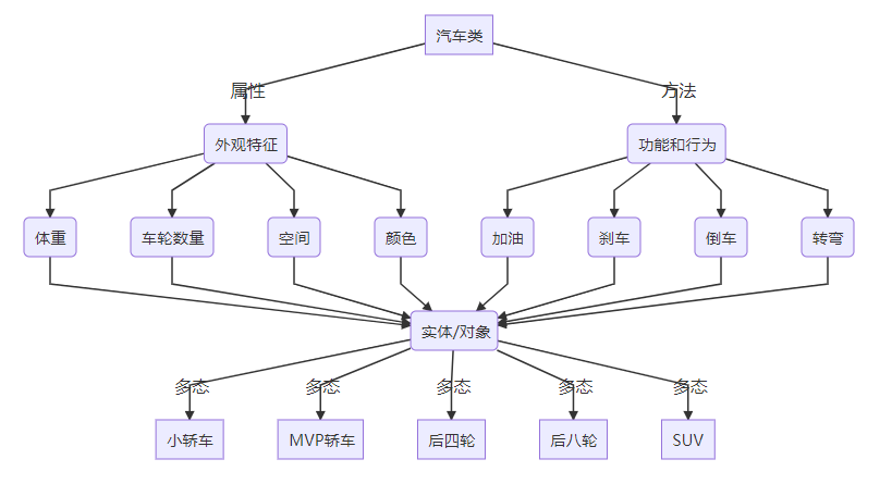 该结构充当了封装对象属性与行为的承担者;也即所有具备相同属性与行为的一组实体均可称为一类(相对直观的理解即是分类)。举例而言像大雁群体这样的集合就可以被看作是一个"飞行动物"类别——因为它们都具备相似的嘴型翼展以及爪形特征;同时它们也都具备相似的行为模式包括飞行觅食以及休息等日常活动。因此这种分类方式在程序层面则意味着这个群体自然构成一个"飞行动物"实例。