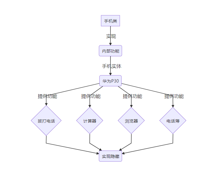 封装是主要对象编程的概念。其将对象的特征与功能封装在一起作为工具使用。这些工具通常会隐藏实现内容的具体细节。这也就形成了封装的思想。换句话说,在现实生活中面对物品或商品时,只要满足你的使用需求即可;至于其内部如何运作则无需过多关注。例如:当我们使用手机进行通话时(计通话),我们只需关心是否能成功连接即可(通断),至于通讯线路的具体技术实现则无需深入探究。