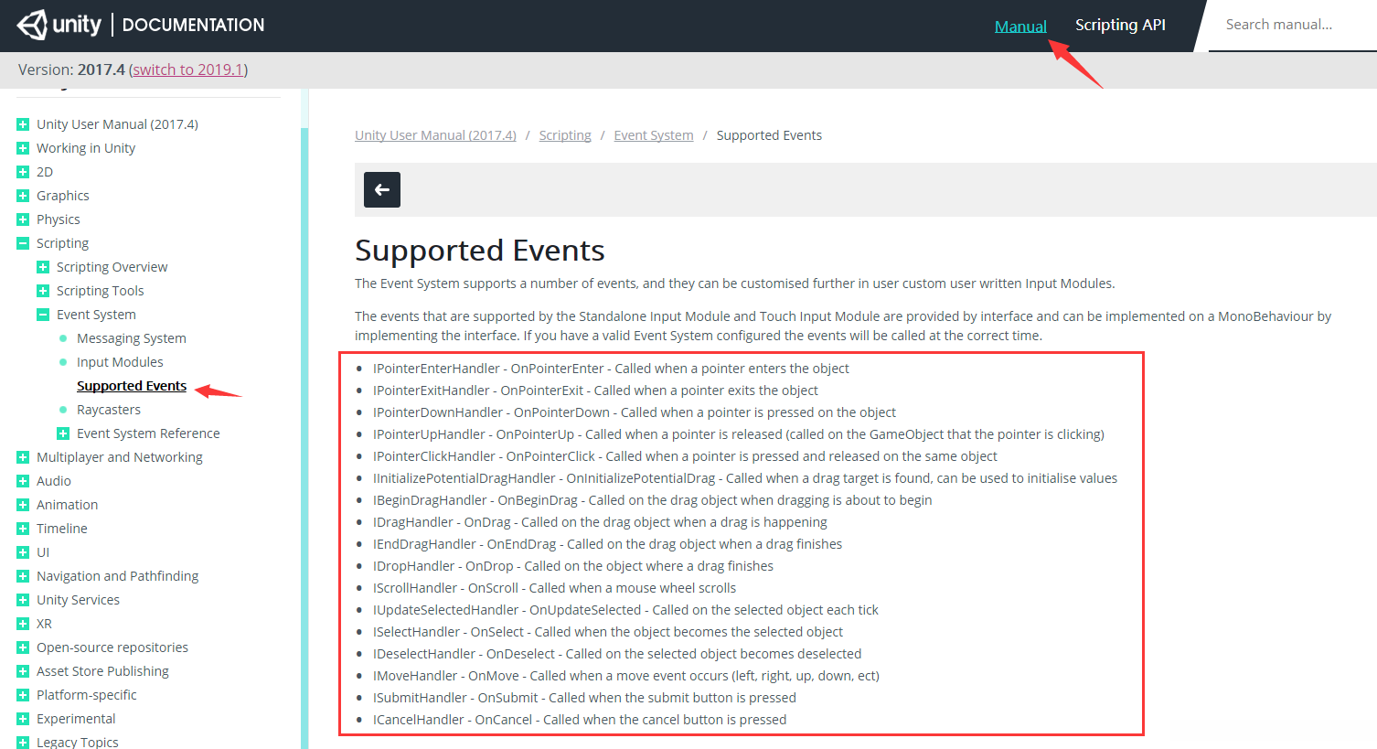 | IDropHandler | 拖拽完成后在对象上抬起鼠标时触发 |