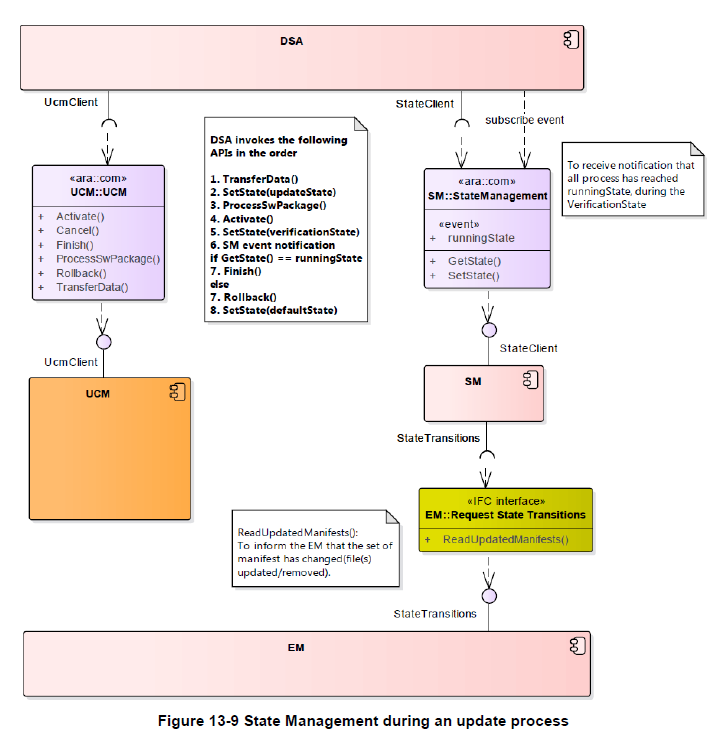 为此,在采用Adaptive(平台)架构时,所有实现同步工作模式的应用程序必须能够通过ara::com接口提供必要的配置参数。这些配置参数可以通过FindService服务获取,并且状态管理器能够在注册后自动关注这些变化。当Adaptive(平台)应用程序执行相关操作时,状态管理器将根据实时数据更新并发送相应的通知信息。