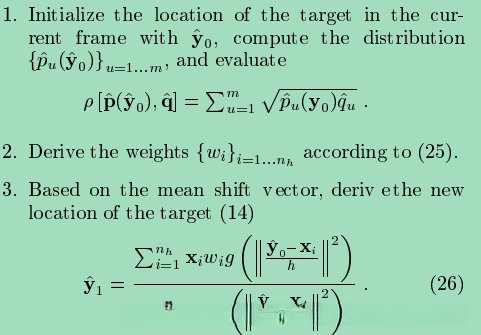 论文中算法的过程 :《Real-Time Tracking of Non-Rigid Objects using Mean Shift》
