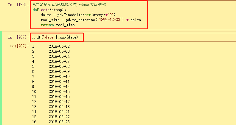 例如,在某个DataFrame中存在一批日期数据,这些数据目前采用的是' stamp date '格式,并且这些记录对于普通用户来说不够直观易懂;然而我期望得到的是能够让人容易理解的标准日期格式