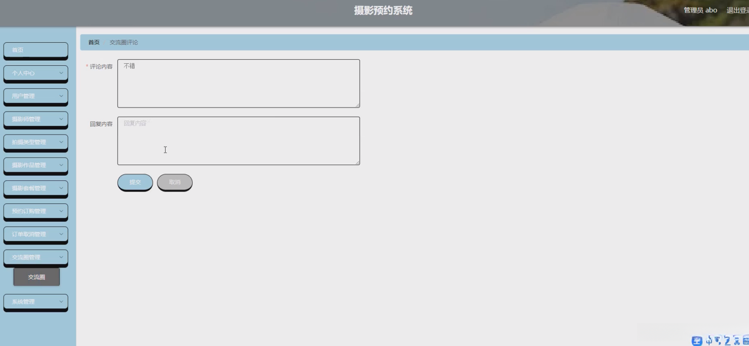 - 用户评价 :允许用户对摄影师和摄影服务进行评价和反馈,增强用户体验的互动性和个性化。