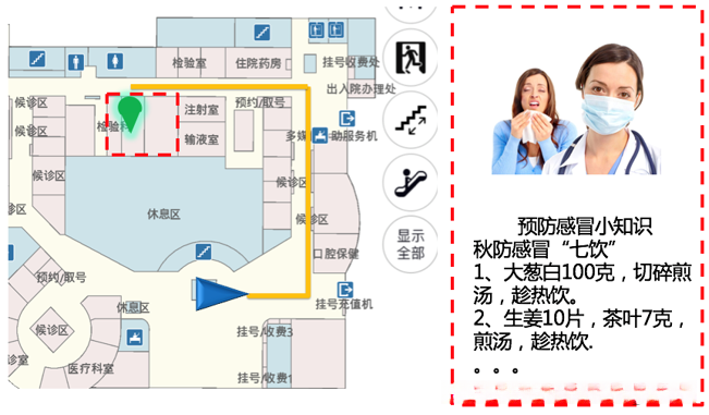为满足医院运营需求,此外还能够提供基于电子围栏的主动推送功能。当病患进入某些病房时会发送相关信息。例如当病患进入滴注室后会发送关于感冒预防的图文资料,并在病患进行滴注的同时向患者普及一些简单的护理常识。