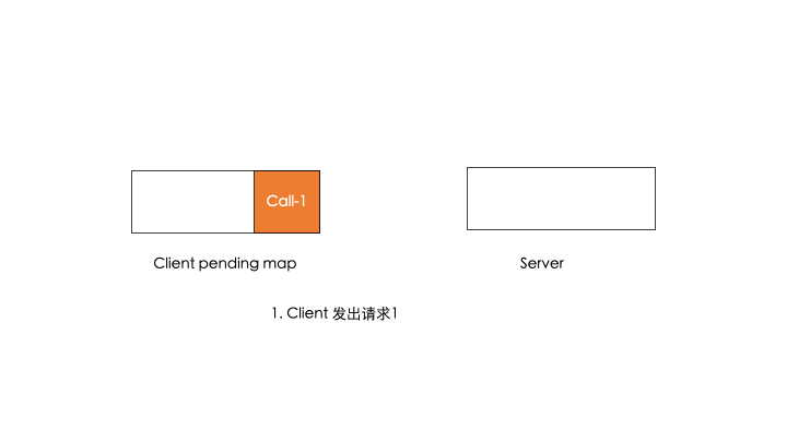 在 Client 对象中存在一个称为 pending 的映射表,在其内部定义了一个名为 key 的字段用于存储请求的唯一标识符。每当 Client发起一次调用操作时,系统会自动递增当前请求的编号,并将其Call对象记录到该pending映射表中;随后立即发送该请求至目标连接处以供处理完毕后查询结果。